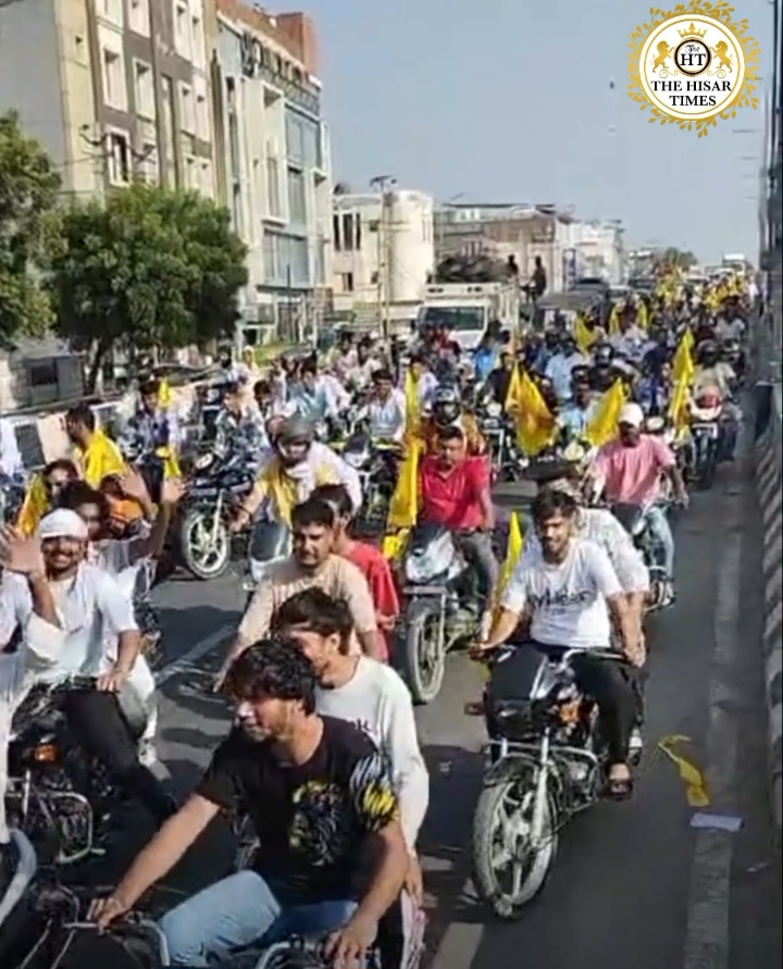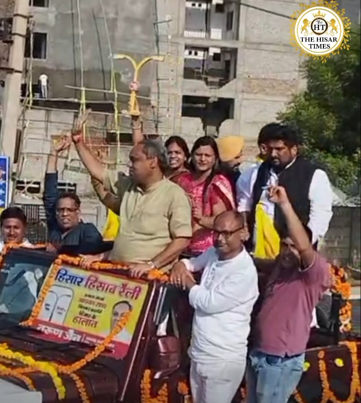 हिसार टाइम्स – जनता के उम्मीदवार तरुण जैन द्वारा आयोजित रोड शो व हिसार हिसाब रैली ने हिसार विधानसभा के समीकरण बदलकर रख दिए हैं। तरुण जैन ने हजारों युवाओं के साथ डाबड़ा चौक स्थित मुख्य चुनाव कार्यालय से रोड शो निकाला। यह रोड शो मॉडल टाउन व जिंदल अस्पताल रोड से होते हुए विभिन्न बाजारों में पहुंचा और वहां से सेक्टर-14 होते हुए नई अनाज मंडी में रैली स्थल पर समापन हुआ। इस दौरान बाइक पर हजारों युवा हाथ में पीला ध्वज थामे व पीला पटका पहने पीतांबरी जनसैलाब की तरह आगे बढ़ते दिखाई दिए। रोड शो के दौरान तरुण जैन आगे बढ़ो-हम तुम्हारे साथ हैं के नारों से पूरा शहर गुंजायमान हो उठा।
