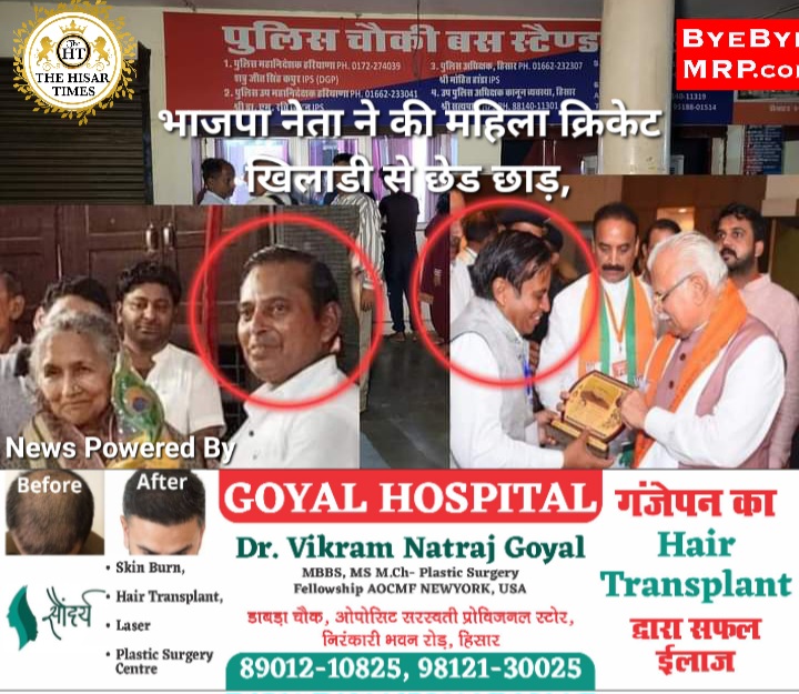 हिसार टाइम्स – हिसार में भाजपा नेता पर महिला क्रिकेट खिलाड़ी से छेड़छाड़ के आरोप लगे हैं। महिला क्रिकेट खिलाड़ी ने बीजेपी अर्बन मंडल उपाध्यक्ष भीमसेन पर यह आरोप लगाए। शुक्रवार रात पीडि़त महिला ने हिसार बस स्टैंड पर खूब हंगामा भी किया। जिसके बाद पुलिस मौके पर पहुंची और मामले की जानकारी जुटाई। परिजनों … Continue reading भाजपा नेता ने की महिला क्रिकेट खिलाडी से छेड छाड़, हिसार बस स्टैंड पर हंगामा !
