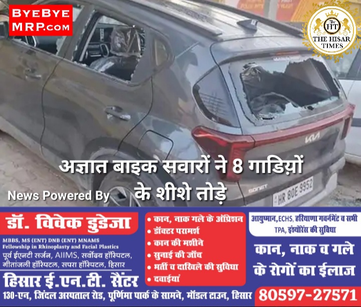 हिसार टाइम्स : हिसार जिला के उकलाना क्षेत्र में शुक्रवार-शनिवार की रात को दौलतपुर गांव में अज्ञात बाइक सवारों ने सडक़ पर मकानों के आगे खड़ी कई गाडिय़ों में तोडफ़ोड़ करने की घटना को अंजाम दिया है, जो मकानों के बाहर लगे सीसीटीवी कैमरों में कैद हुई है। मिली जानकारी अनुसार रात्रि को लगभग 2 … Continue reading अज्ञात बाइक सवारों ने 8 गाडिय़ों के शीशे तोड़े, घटना सीसीटीवी कैमरे में हुई कैद !