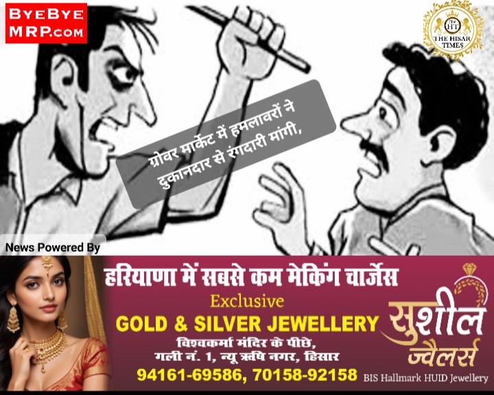 हिसार,ग्रोवर मार्केट में दो हमलावरों ने दुकानदार से रंगदारी मांगी,चाकू घोपा !