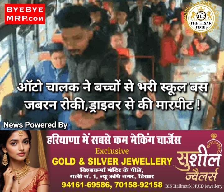 हिसार टाइम्स – हिसार में एक ऑटो वाले ने स्कूली बच्चों से भरी स्कूल बस के ड्राइवर पर हमला कर दिया। आरोपी ने पहले आगे ऑटो अड़ाकर स्कूल बस को रोका। उसके बाद वह बस में चढ़ गया और बच्चों के सामने ही ड्राइवर से गाली-गलौज व मारपीट करने लगा। जब लेडी कंडक्टर ने उसे रोकने की कोशिश की तो उसके साथ भी बदसलूकी की।