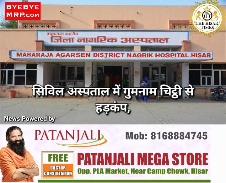 हिसार टाइम्स – हिसार के सिविल अस्पताल में एक चिट्ठी जिस पर किसी का नाम नहीं लिखा है ने हड़कंप मचा दिया है। इसको लेकर सिविल सर्जन ने पीएमओ से जवाब मांगा है। चिट्ठी में ऑपरेशन थियेटर में केबिन बनाकर प्रवेश एवं निकासी गेट बंद रखने का आरोप है। आरोप है कि ऑपरेशन थियेटर का मुख्य गेट मरीजों को ऑपरेशन के लिए अंदर लाने व वापस ले जाने के लिए बना हुआ था।