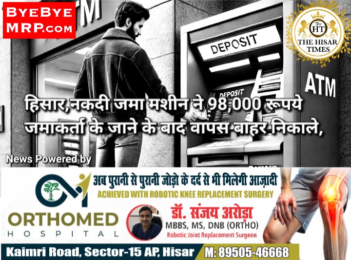 हिसार,नकदी जमा मशीन ने 98,000 रूपये जमाकर्ता के जाने के बाद वापस बाहर निकाले,अज्ञात व्यक्ति की मौज !