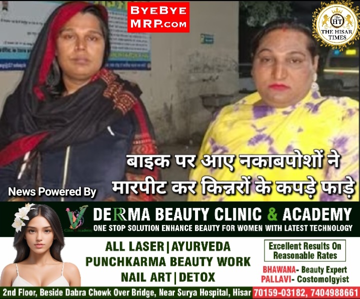 हिसार टाइम्स – हिसार के सेक्टर 1-4 के पास शुक्रवार रात करीब 8 बजे बाइकों पर आए पांच नकाबपोशों ने पैदल जा रही तीन किन्नरों के साथ मारपीट कर आभूषण लूट लिए इस दौरान एक किन्नर को गहरी चोटें आई हैं, जिससे उसे अस्पताल में भर्ती करवाना पड़ा। किन्नरों ने बताया है कि नकाबपोश बदमाशों ने उनके कपड़े फाड़ दिए। साथ ही एक पर्स और 3 सोने की चेन छीन ले गए।