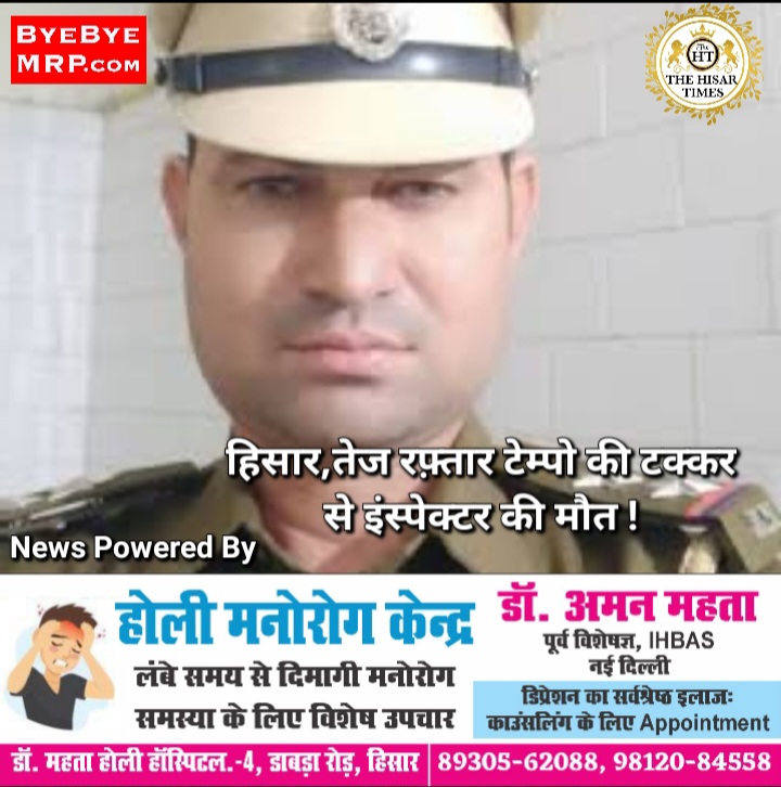 हिसार,तेज रफ़्तार टेम्पो की टक्कर से इंस्पेक्टर की मौत !