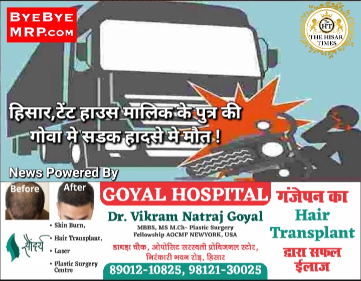 हिसार,टेंट हाउस मालिक के पुत्र की गोवा मे सडक हादसे मे मौत !