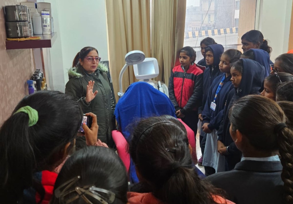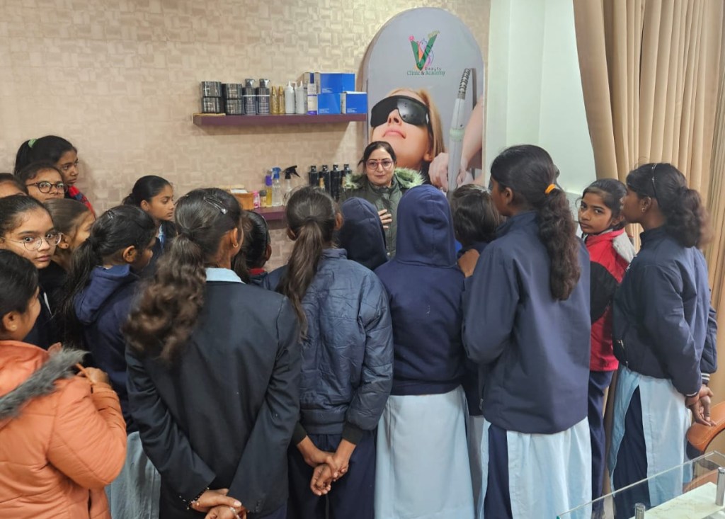 हिसार टाइम्स – गांव शाहपुर के राजकीय वरिष्ठ माध्यमिक विद्यालय की 39 छात्राओं ने मैडम पूजा के नेतृत्व में डाबड़ा चौक के पास स्थित वी डरमा ब्यूटी क्लीनिक एंड एकेडमी का शैक्षणिक भ्रमण किया और ब्यूटी क्लीनिक क्षेत्र में रोजगार की संभावनाओं के बारे में जानकारी हासिल की।