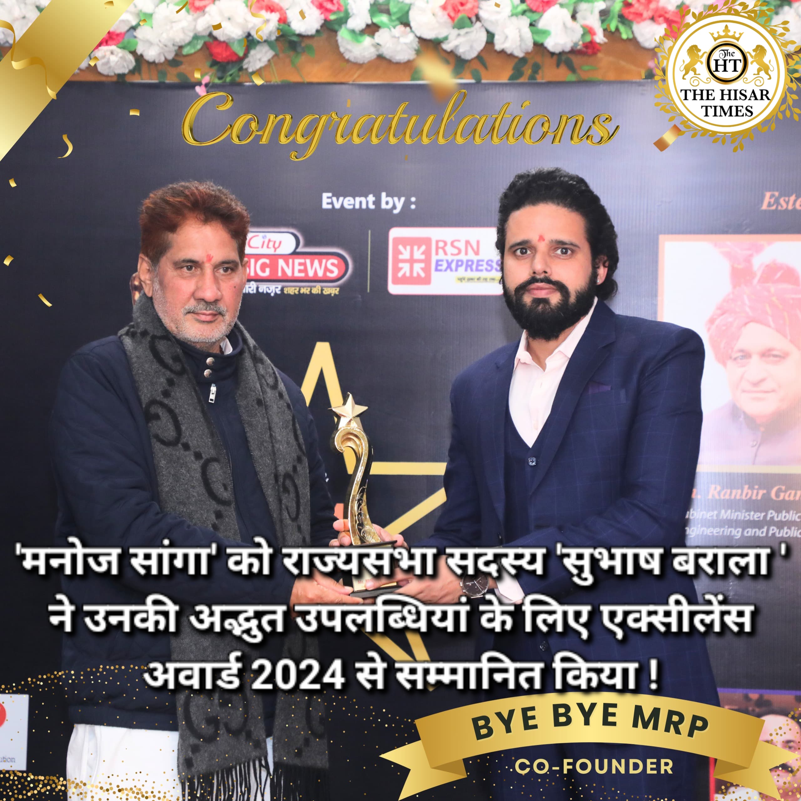 ▪️मनोज सांगा को उनकी अद्भुत उपलब्धियां के लिए एक्सीलेंस अवार्ड 2024 से सम्मानित किया गया ! ▪️विदेशों में मार्केटिंग स्किल्स और उपभोक्ता व्यवहार को समझने के बाद अपने देशवासियों के लिए एक अनूठा प्लेटफॉर्म BYE BYE MRP तैयार किया ! हिसार टाइम्स – BYE BYE MRP के संस्थापक श्री मनोज सांगा ने हिसार टाइम्स से … Continue reading हर सामान MRP से कम कीमत पर उपलब्ध करवाता है BYE BYE MRP- मनोज सांगा