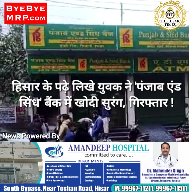 हिसार के युवक ने लूट के इरादे से ‘पंजाब एंड सिंध’ बैंक में खोदी सुरंग, गिरफ्तार !