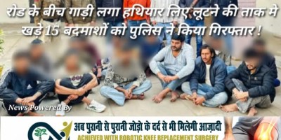 रोड के बीच गाड़ी लगा हथियार लिए लूटने की ताक मे खड़े 15 बदमाशों को पुलिस ने किया गिरफ्तार !