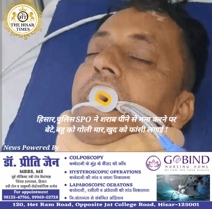 हिसार टाइम्स – हिसार में हरियाणा पुलिस में स्पेशल पुलिस ऑफिसर (SPO) के पद पर तैनात कश्मीर सिंह ने शराब पीने से रोकने पर बेटे और बहू को गोली मारकर घर में फांसी लगा ली। तीनों को प्राइवेट अस्पताल में भर्ती कराया गया है। बेटे के सीने और बहू की पीठ पर गोली लगी। घटना रविवार दोपहर 1 बजे बीड़ बबरान गांव की है।पुलिस सूत्रों के मुताबिक कंवलप्रीत (26) और उसकी पत्नी गुरप्रीत कौर (24) ने पिता कश्मीर सिंह को शराब पीने से रोका था।