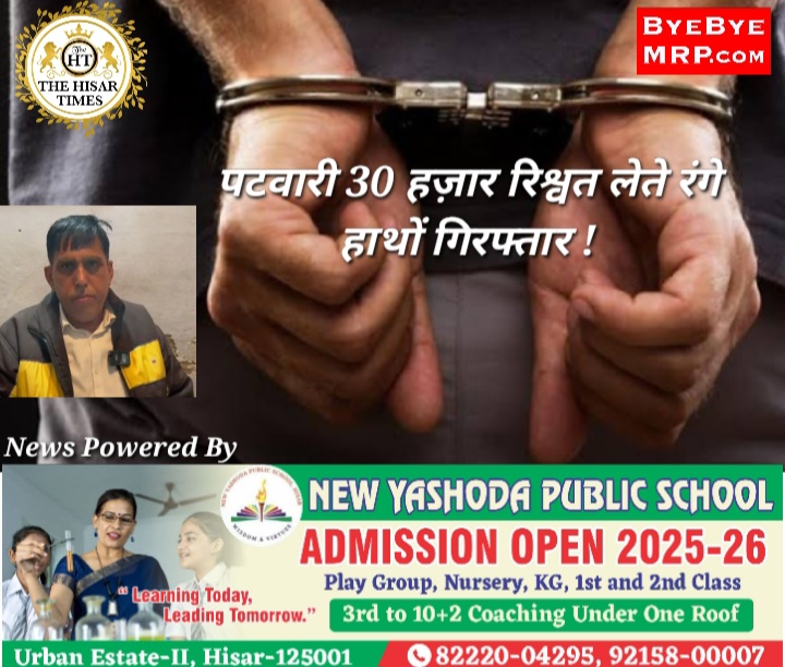 हिसार टाइम्स – हिसार के रहने वाले कपिल ने पटवारी मुकेश कुमार के खिलाफ रिश्वत मांगने की शिकायत की जिस पर संज्ञान लेते हुए एंटी करप्शन ब्यूरो (एसीबी) की हिसार टीम ने आरोपी पटवारी को रंगे हाथों रिश्वत लेते गिरफ्तार किया । पटवारी की पहचान मुकेश कुमार के रूप में हुई है। वह भिवानी के डीटीपी कार्यालय में काम करता है। ACB टीम को मामले की सूचना हिसार के रहने वाले कपिल ने दी है।