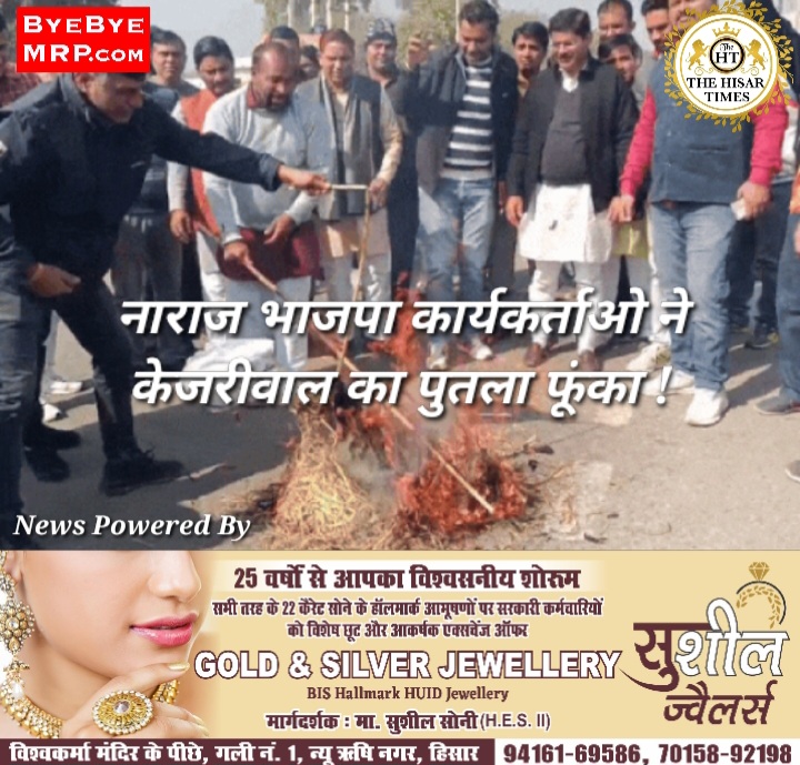 हिसार टाइम्स – हिसार में आज नाराज भाजपा कार्यकर्ताओं ने दिल्ली के पूर्व मुख्यमंत्री अरविंद केजरीवाल द्वारा यमुना के प्रदूषित पानी को लेकर हरियाणा पर लगाए गए आरोपों के विरोध में जोरदार प्रदर्शन किया।भाजपा कार्यालय के सामने जिलाध्यक्ष अशोक सैनी के नेतृत्व में एकत्रित कार्यकर्ताओं ने दिल्ली की मुख्यमंत्री आतिशी और पूर्व मुख्यमंत्री अरविंद केजरीवाल का पुतला फूंका।जिलाध्यक्ष अशोक सैनी ने कहा कि 5 फरवरी को होने वाले दिल्ली चुनाव में भाजपा की जीत निश्चित है, जिस कारण केजरीवाल बौखलाहट में बयानबाजी कर रहे हैं।