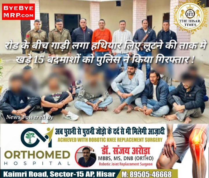 रोड के बीच गाड़ी लगा हथियार लिए लूटने की ताक मे खड़े 15 बदमाशों को पुलिस ने किया गिरफ्तार !