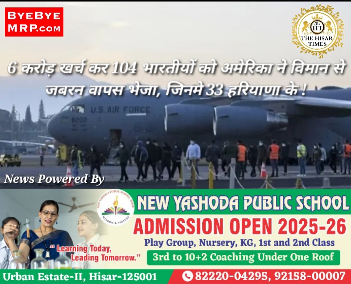 हिसार टाइम्स – भारतीय प्रधानमंत्री नरेंद्र मोदी 12 फरवरी को दो दिन की यात्रा पर अमेरिका जाने वाले हैं।13 फरवरी को पीएम की ट्रम्प के साथ वार्ता प्रस्तावित है। इसी बीच अमेरिका ने बुधवार को नई इमिग्रेशन पॉलिसी के तहत 104 अवैध प्रवासी भारतीयों को जबरन डिपोर्ट कर दिया। अमेरिकी एयरफोर्स का विमान सी-17 ग्लोबमास्टर इन्हें लेकर दोपहर करीब 2 बजे अमृतसर में एयरफोर्स के एयरबेस पर उतरा। इनमें पंजाब के 30, हरियाणा-गुजरात के 33-33 लोग शामिल थे।