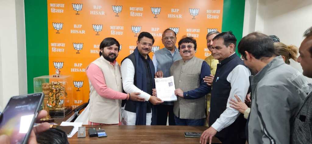 हिसार टाइम्स – सचिन ग्रोवर ने जिला अध्यक्ष अशोक सैनी को हिसार के मेयर पद के लिए आवेदन किया !