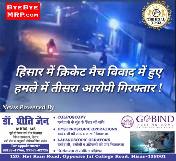 हिसार टाइम्स – हिसार जिले में क्रिकेट मैच को लेकर हुए विवाद के बाद जानलेवा हमले के मामले में पुलिस ने राजस्थान के हनुमानगढ़ से तीसरे आरोपी मुकेश उर्फ मोनू को गिरफ्तार कर लिया है, जानकारी के अनुसार 7 जनवरी को गांव लुदास में क्रिकेट मैच को लेकर शिकायतकर्ता रवि और आरोपी विशाल के बीच विवाद हुआ था, जिसका उस समय समझौता भी हो गया था, लेकिन रंजिशन 2 फरवरी की शाम को आरोपियों ने रवि पर जानलेवा हमला कर फायरिंग कर दी थी,मामले में दो हमलावर पहले से गिरफ्तार है !