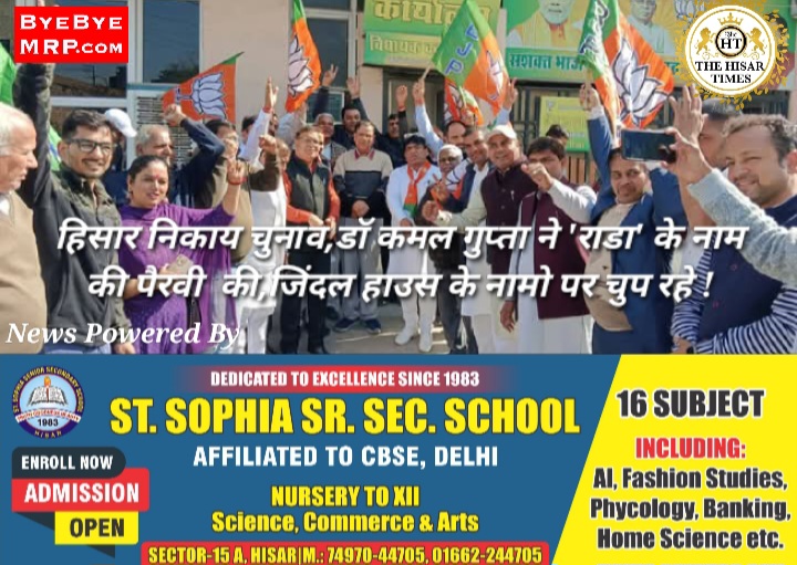नोट – नौकरी संबंधित सूचनाओं के लिए निचे देखें हिसार टाइम्स जॉब्स क्लासीफाइड ! हिसार टाइम्स – निकाय चुनाव की घोषणा के बाद से हिसार में उम्मीदवारों के पल पल समीकरण बदल रहे हैं, हर कोई अपने आप को टिकट का दावेदार बता रहा है, इसी बीच भाजपा ने एक कदम आगे बढ़ाते हुए मेयर … Continue reading मीटिंग में पूर्व मंत्री डॉ कमल गुप्ता ने ‘राडा’ का नाम आगे बढ़ाया, जिंदल हाउस के नामो पर चुप रहे !