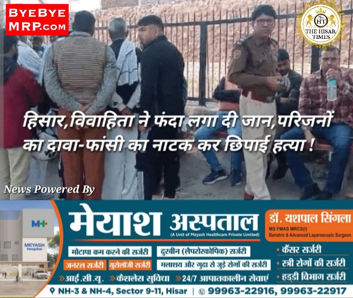 हिसार,विवाहिता ने फंदा लगा दी जान,परिजनों का दावा-फांसी का नाटक कर छिपाई हत्या !