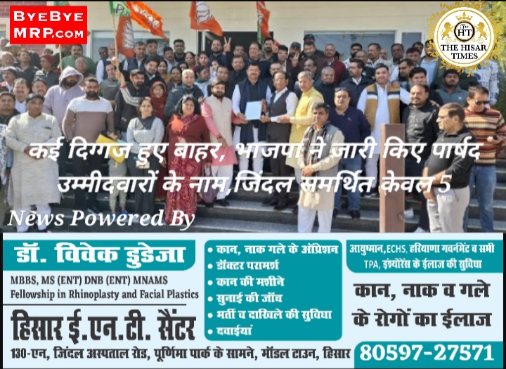 हिसार टाइम्स – भाजपा ने हिसार नगर निगम चुनाव के लिए सभी 20 वार्डों के पार्षद उम्मीदवारों की घोषणा कर दी है। इस लिस्ट में जिंदल हाउस समर्थित 5 उम्मीदवारों को टिकट मिल गया है। खास बात यह रही कि इस बार पुराने चेहरे नगर निगम में नजर नहीं आएंगे। पुराने दिग्गज पार्षदों के वार्ड रिजर्व होने से उनकी पत्नियां मैदान में हैं या वो इस बार खुद रेस से बाहर हो गए हैं