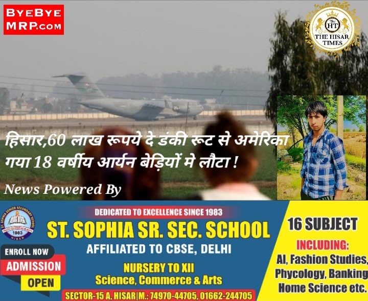 हिसार,60 लाख रूपये दे डंकी रूट से अमेरिका गया 18 वर्षीय आर्यन बेड़ियों मे लौटा !