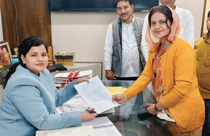 ▪️वार्ड 8 से पार्षद पद के लिए नामांकन पत्र दाखिल करती मधु शर्मा !