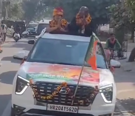 ▪️बीजेपी से वार्ड नंबर एक से पार्षद पद के उम्मीदवार सरोज जैन धर्मपत्नी पूर्व पार्षद टीनू जैन नामांकन पत्र भरने के लिए जाते हुए……..