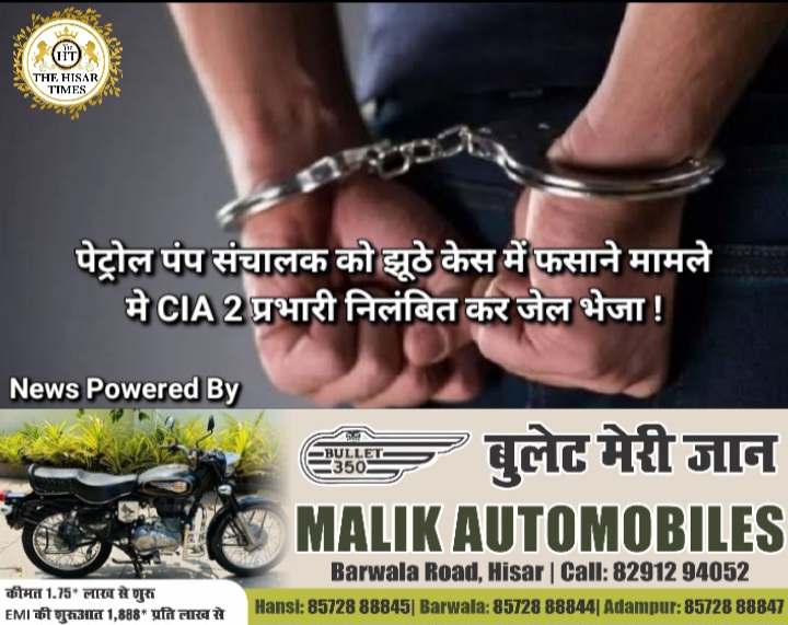 पेट्रोल पंप संचालक को झूठे केस में फसाने मामले मे CIA 2 प्रभारी निलंबित कर जेल भेजा !