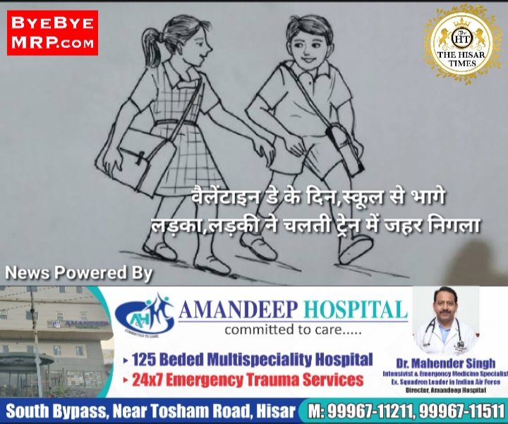 हिसार टाइम्स – वैलेंटाइन डे के दिन घर से भागे हरियाणा के चरखी दादरी स्कूल मे पढ़ने वाले प्रेमी जोड़े ने राजस्थान जाकर जहर निगल लिया। इसमें लड़के की मौत हो गई है, जबकि नाबालिग लड़की की हालत गंभीर है। ये दोनों एक ही स्कूल में पढ़ते थे और चरखी दादरी के ही अलग-अलग गांवों … Continue reading वैलेंटाइन डे के दिन,स्कूल से भागे लड़का,लड़की ने चलती ट्रेन में जहर निगला !