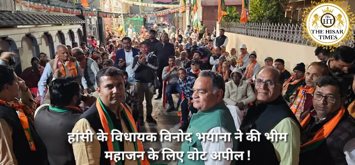 हिसार टाइम्स – हिसार के वार्ड नंबर 5 के भाजपा पार्षद पद प्रत्याशी भीम महाजन के लिए वोट अपील करने हांसी के विधायक विनोद भयाना हिसार पहुंचे,वार्ड नंबर 5 शास्त्री नगर दुर्गियाना मंदिर के पास विधायक विनोद भयाना और भीम महाजन का लोगो ने भव्य स्वागत किया,शास्त्री नगरवासियों ने अटूट प्रेम और स्नेह के साथ विश्वास दिलाया के शास्त्रीनगर के लोगो का 100 प्रतिशत मत दान भारतीय जनता पार्टी के हक़ में ही होगा, इस मौके पर विधायक विनोद भयाना ने कहा कि भाजपा की ट्रिपल इंजन सरकार ही प्रदेश व वार्ड का विकास करवा सकती हैं, तो आने वाली 2 मार्च को हिसार से मेयर पद प्रत्याशी प्रवीण पोपली व आपके वार्ड से पार्षद पद प्रत्याशी भाई भीम महाजन को विजय बनाएं ताकी हिसार व वार्ड स्तर पर समस्याओं का समाधान हो सके !