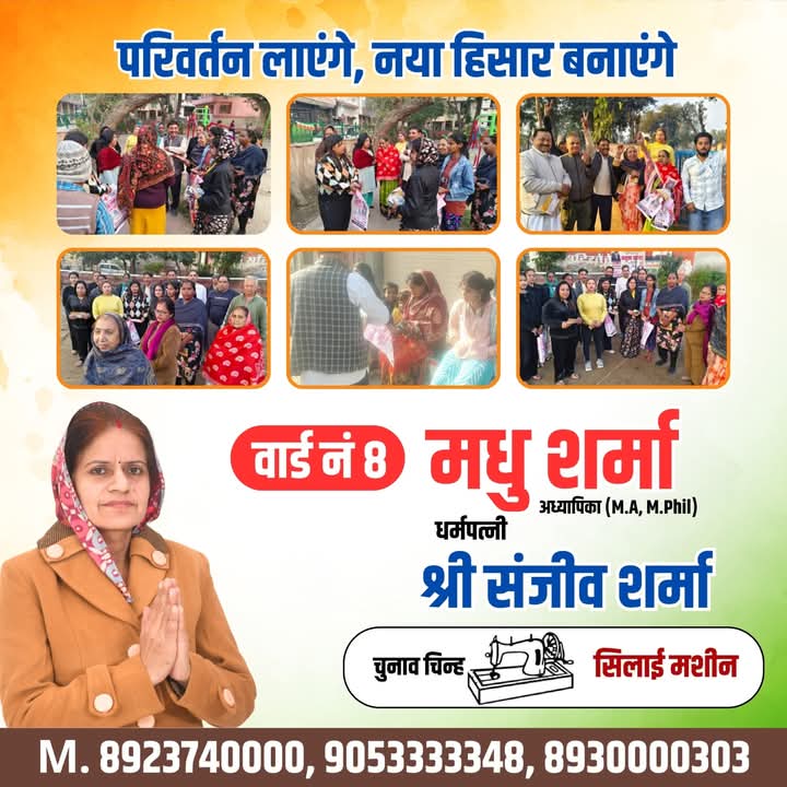 इस मौके पर मुख्य अतिथि के रूप में पूज्य स्वामी राजदास जी महाराज आशीर्वाद देने पहुंचे, मुहूर्त के दौरान जनता का अपार समर्थन और जोश दिखाता है कि वार्ड 8 अब विकास की नई राह पर आगे बढ़ने को तैयार है, मधु शर्मा ने कहा आप सभी का सहयोग और आशीर्वाद हमारी सबसे बड़ी ताकत है। अब समय है एकजुट होकर वार्ड 8 को तरक्की की ओर ले जाने का, आने वाली 2 मार्च को सिलाई मशीन चुनाव चिन्ह पर वोट देकर अपने क्षेत्र में शिक्षा, विकास और सेवा को प्राथमिकता दें।
