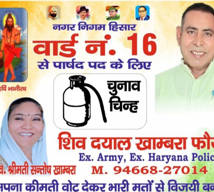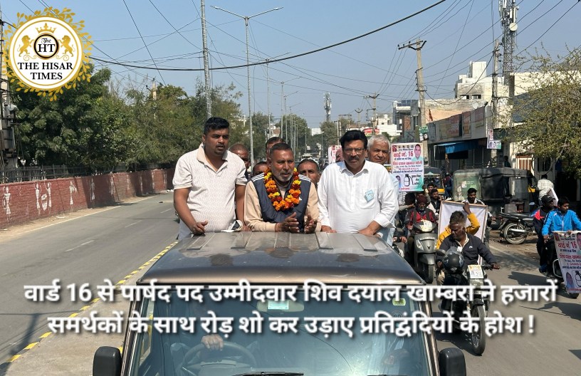 हिसार टाइम्स – हिसार के वार्ड नंबर 16 से पार्षद पद प्रत्याशी शिव दयाल खाम्बरा ने आज अपने हजारों समर्थकों के साथ रोड़ शो करके अपने प्रतिद्वंदियों के होश उड़ा दिए, इस दौरान सैकड़ो समर्थक मोटरसाइकिल पर हाथों में झंडे और बैनर लिए वार्ड 16 के गली मोहल्लो से निकले तू लोग देख कर दंग रह गए रोड शो के दौरान शिव दयाल खाम्बरा ने कहा कि वार्ड नंबर 16 के लोग मेरा परिवार है और मैं वार्ड और वार्ड के लोगों को मूलभूत सुविधाए प्रदान करवाने के लिए हमेशा तैयार रहूंगा !