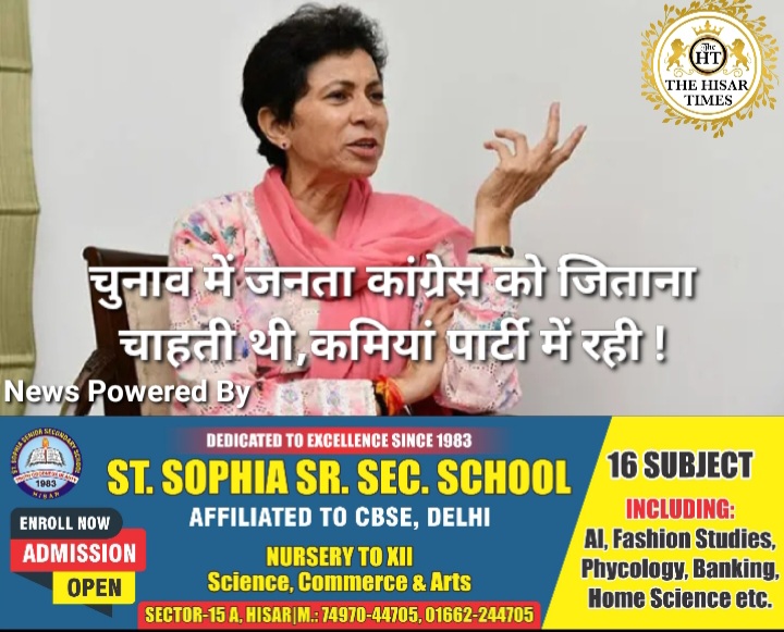 हिसार टाइम्स – कांग्रेस सांसद कुमारी सैलजा ने कहा कि हरियाणा विधानसभा चुनाव में जनता कांग्रेस को जिताना चाहती थी, कार्यकर्ताओं ने मेहनत भी की, लेकिन इसके बावजूद कांग्रेस हारी। इसमें काफी कमियां पार्टी में रही हैं। इन कमियों को दूर किया जाएगा, तभी आगे बात बनेगी। कमियां कहां हैं और कौन जिम्मेदार है, यह पार्टी देख रही है।सांसद फतेहाबाद प्रेस क्लब के साथ आयोजित कार्यक्रम में शामिल हुईं।