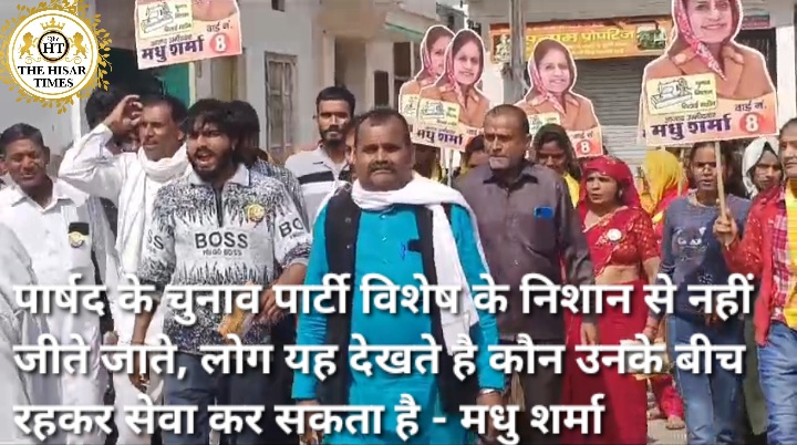 हिसार टाइम्स – वार्ड नंबर 8 से पार्षद पद प्रत्याशी मधु शर्मा वह उनके कार्यकर्ताओं ने चुनाव के अंतिम क्षणो में अपनी जी जान झोंक दी है, हिसार के वार्ड नंबर 8 का चुनाव हिसार की हॉट सीटों में से एक है जिस पर सभी की निगाहें टिकी हुई है,जैसे-जैसे वोटिंग का दिन नजदीक आ रहा है वैसे वैसे मधु शर्मा की स्थिति और मजबूत होती जा रही है,