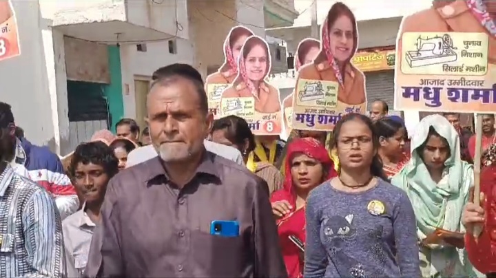 जनसंपर्क अभियान के दौरान लोगों का हजूम उनके साथ दिख रहा, महिला शक्ति,भाइयो व बुजुर्गों ने उन्हें जीत के आशीर्वाद के साथ-साथ अपना पूर्णतया समर्थन दिया है, वार्ड नंबर 8 से पार्षद पद की प्रत्याशी मधु शर्मा ने कहा कि मैंने और मेरे परिवार ने वार्ड 8 की सदा से ही सेवा की है और आगे भी करते रहेंगे,उन्होंने कहा कि पार्षद पद के चुनाव पार्टी के निशान से नहीं जीते जाते,लोग यह देखते हैं कि कौन सा प्रत्याशी उनके बीच का है और उनके बीच में रहकर सेवा कर सकता है !गोरतलब है की मधु शर्मा व उनके पति संजीव शर्मा को ब्रह्म कुमारी कुटिया के संतों ने आशीर्वाद दिया था व पूर्व पार्षद मदन लाल बुंदेला ने मधु शर्मा को आशीर्वाद देकर समर्थन दिया था और पूज्य स्वामी राजदास जी महाराज भी आशीर्वाद देने पहुंचे थे !