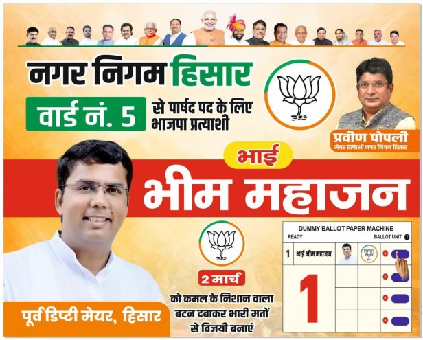 हिसार नगर निगम में मेयर पद के लिए कुल 7 प्रत्याशी मैदान में हैं। मगर कांग्रेस और भाजपा में ही सीधा मुकाबला माना जा रहा है। इसके अलावा नगर निगम में कुल 116 प्रत्याशी मैदान में हैं, जिनकी किस्मत का फैसला आज होगा। मतदान खत्म होने के बाद ईवीएम को सील करके जमा करवाने के लिए पोलिंग पार्टियां महाबीर स्टेडियम में शाम को वापस पहुंचेगी। जहां से स्ट्रॉन्ग रूम में 12 मार्च तक ईवीएम को संभाल कर रखा जाएगा। 12 मार्च को काउंटिंग होगी।