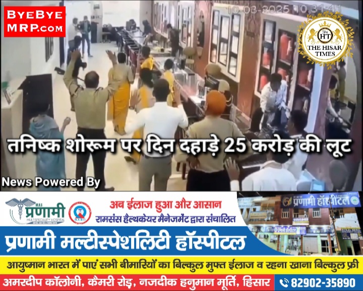 हिसार टाइम्स – बिहार के आरा शहर मे गोपाली चौक स्थित तनिष्क के शोरूम में दिनदहाड़े हथियार बंद डकैतों ने लूट की बड़ी घटना को अंजाम दिया।करीब 8-10 की संख्या में आए हथियारबंद अपराधियों ने शोरूम के स्टाफ को बंधक बनाकर 30 मिनट तक लूटपाट की और ज्वेलरी से भरे बैग लेकर फरार हो गए. इस घटना का पूरा वीडियो CCTV में कैद हो गया. पूरे बिहार की सबसे बड़ी ये ज्वेलरी का लूट कांड माना जा रहा है। घटना के बाद कई तरह के सवाल भी पैदा हो रहे हैं कि आखिर इस भीड़भाड़ वाले इलाके में किस तरह से दिन दहाड़े हथियारबंद अपराधी इतने बड़े लूटकांड को अंजाम देकर फरार हो गए। घटना के बाद इस पूरी लूट की वारदात का सीसीटीवी फुटेज सामने आया है,