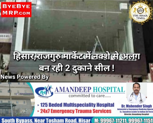 हिसार टाइम्स – हिसार नगर निगम ने मंगलवार को राजगुरु मार्केट में नक्शे के विपरीत बनाई जा रही दो दुकानों को सील कर दिया। निगम की भवन शाखा ने दुकान मालिक को जनवरी में नोटिस थमाया था। इसके बाद भी दुकान मालिक ने निर्माण बंद नहीं किया। राजगुरु मार्केट में दुकान नंबर 169-170 को मिलाकर एक दुकान बनाई जा रही थी। दुकान मालिक ने निगम की भवन शाखा से बेसमेंट,ग्राउंड फ्लोर व फर्स्ट फ्लोर का नक्शा मंजूर करवाया था, लेकिनसेकंड व थर्ड फ्लोर का भी निर्माण कर लिया। 20 नवंबर को जब निगम में शिकायत की गई तो निगम की भवन शाखा के कर्मचारी मौके पर पहुंचे, लेकिन कोई कार्रवाई नहीं की। इसके बाद जनवरी में निगम अधिकारियों ने दुकान मालिक को नोटिस थमाया। दो माह बाद भी इस मामले में कार्रवाई नहीं हुई तो शिकायतकर्ता तिलकराज मंगलवार को निगम कार्यालय पहुंचा और निगमायुक्त नीरज से मिला।इसके बाद निगमायुक्त ने संबंधित शाखा के अधिकारियों को तलब किया और कार्रवाई करने के आदेश दिए। भवन शाखा की टीम मौके पर पहुंची और दुकान को सील किया। सूत्रों की मानें तो निगमायुक्त ने भवन शाखा के अधिकारियों से पिछले 4-5 माह की रिपोर्ट मांगी है। पूछा गया है कि शाखा की तरफ से जितने भी नोटिस भवन मालिकों को दिए गए हैं, उन पर क्या कार्रवाई की गई है।