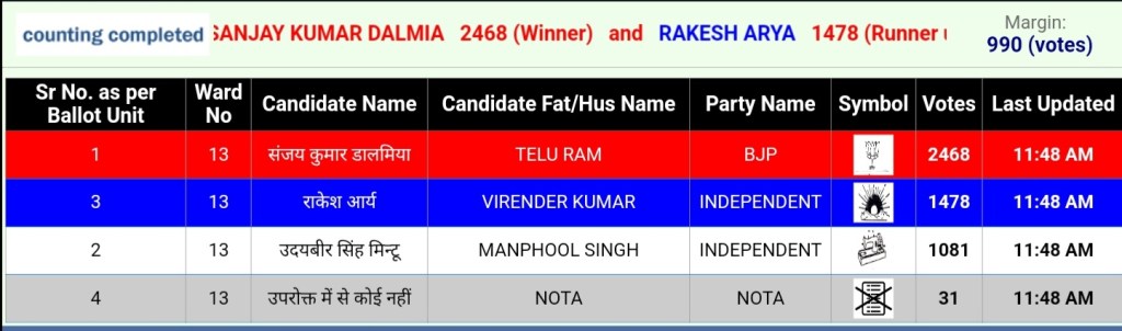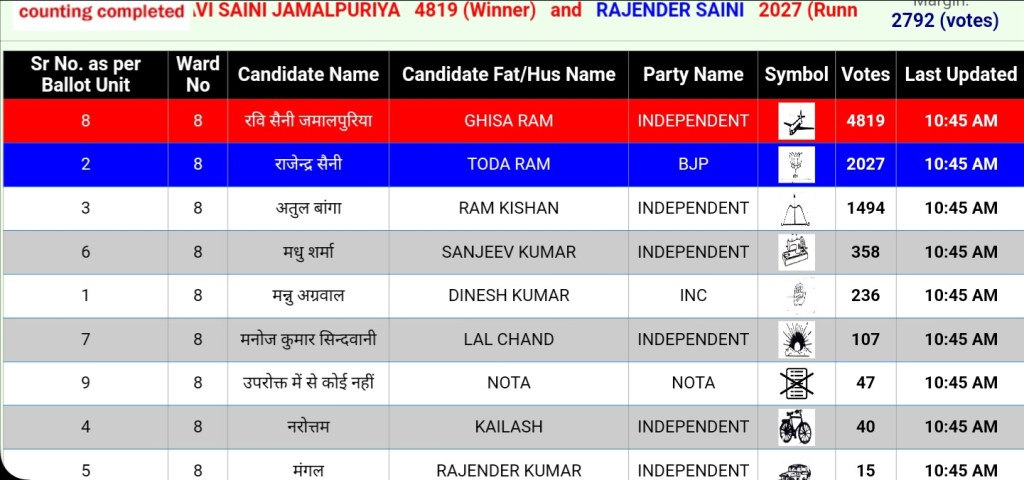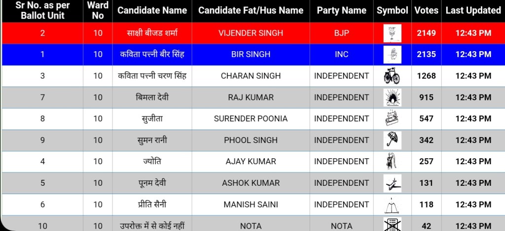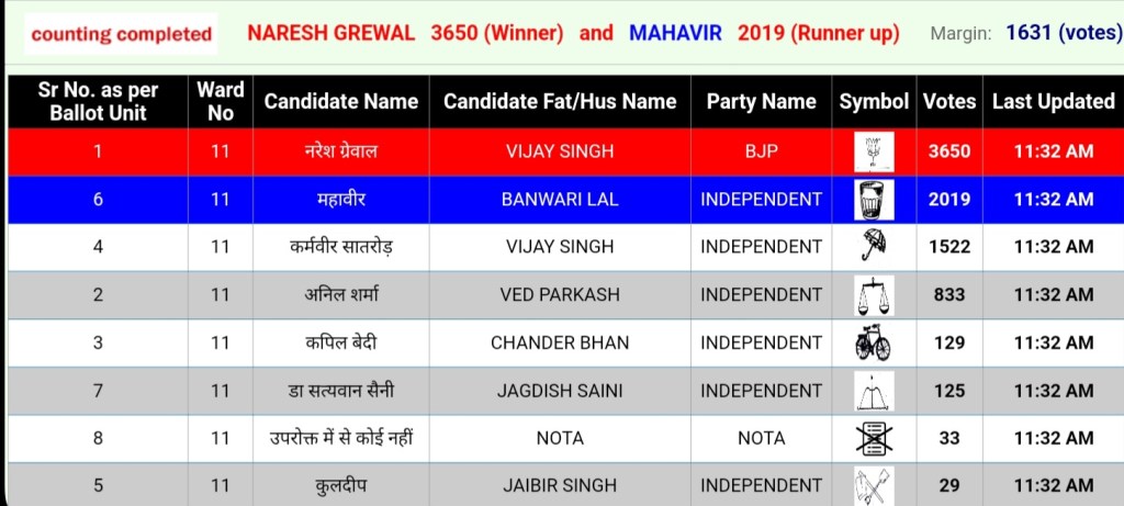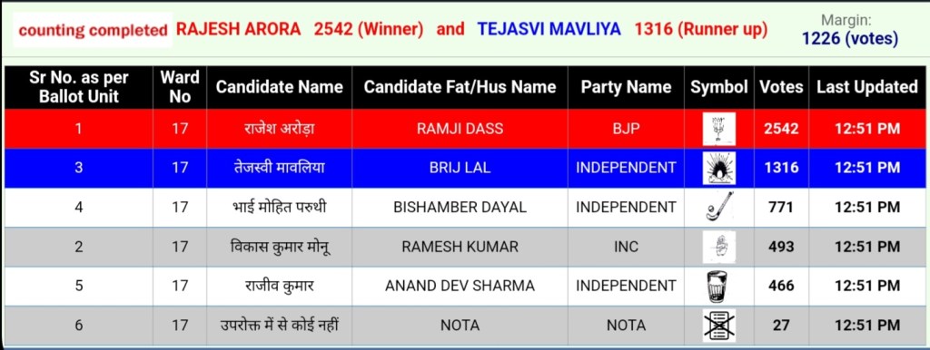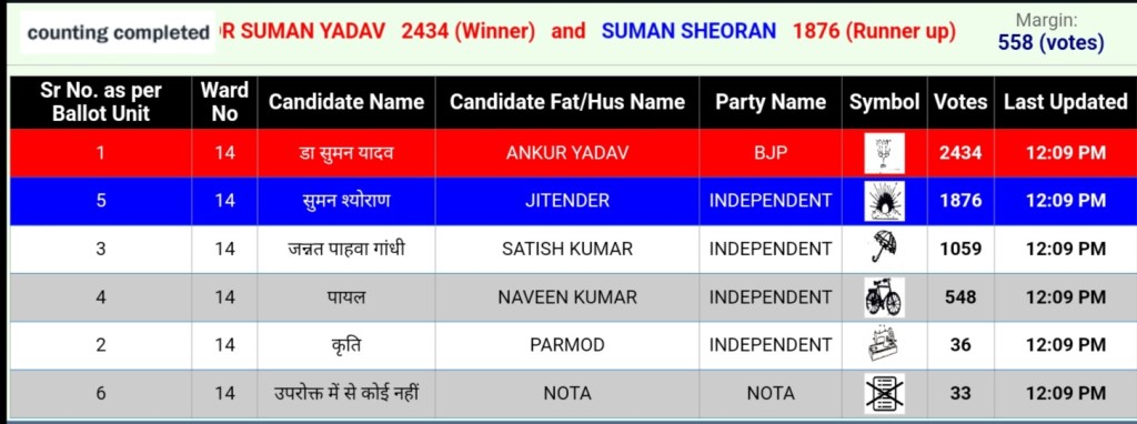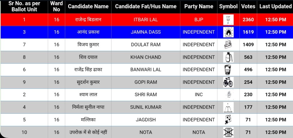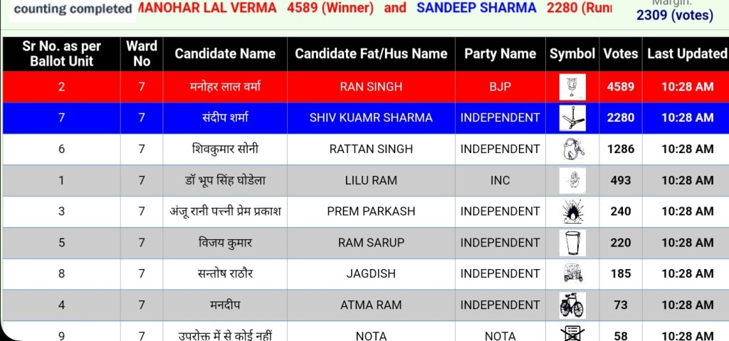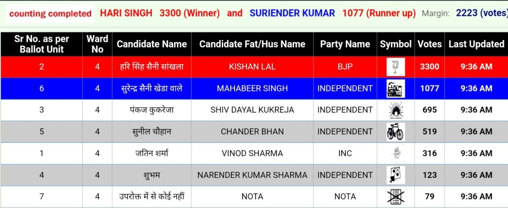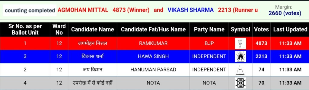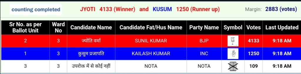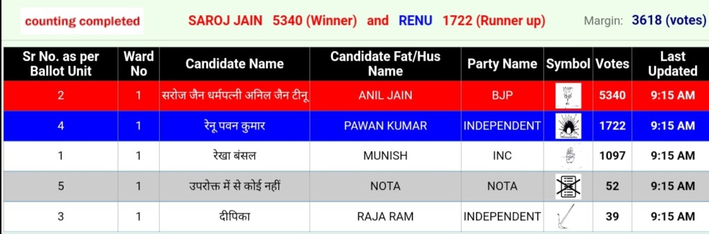 वार्ड वाइज सभी प्रत्याशियों के वोटो का लेखा-जोखा