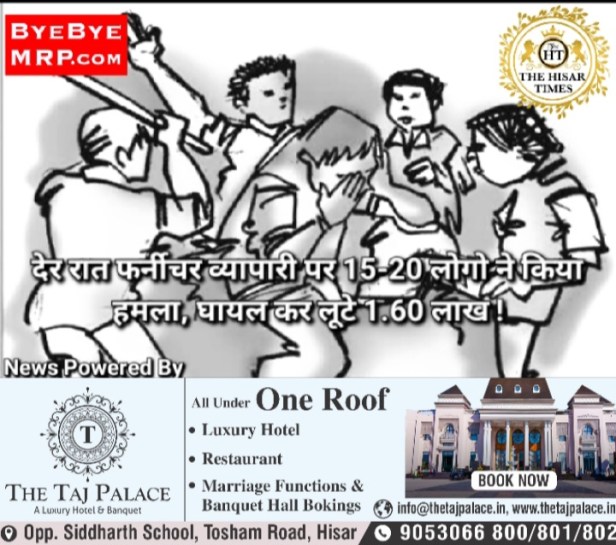 ▪️हिसार,देर रात फर्नीचर व्यापारी पर 15-20 लोगो ने किया हमला, घायल कर लूटे 1.60 लाख !