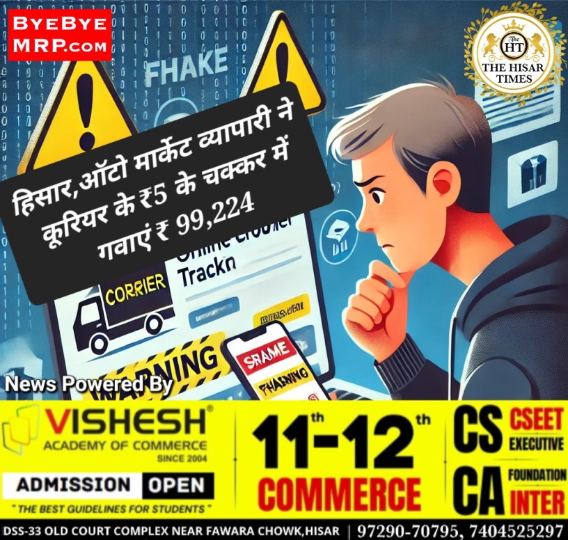 हिसार टाइम्स – हिसार की ऑटो मार्केट के व्यापारी के साथ 99,224 रुपये की धोखाधड़ी हो गई। पुलिस को दी शिकायत में नरेंद्र ने बताया कि वह ऑटो मार्केट में दुकान चलाते हैं। उन्होंने ऑनलाइन शॉपिंग की थी। पांच मार्च को ऑल कार्गो गति कंपनी के माध्यम से एक कूरियर आना था।समय पर उनका कूरियर नहीं आया तो उन्होंने कूरियर का पता करने के लिए गूगल पर कंपनी का नंबर सर्च कर कॉल की।