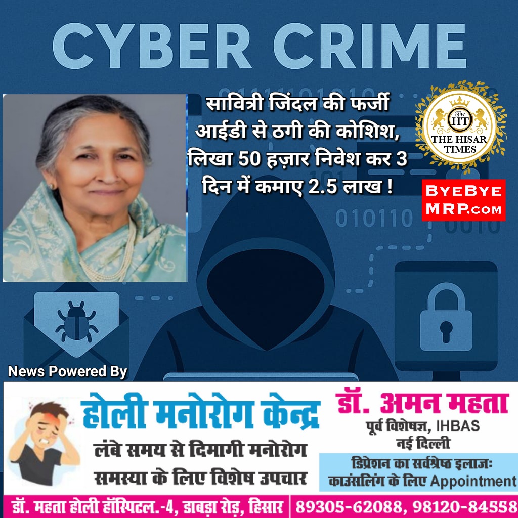 सावित्री जिंदल की फर्जी आईडी से ठगी की कोशिश, लिखा 50 हज़ार निवेश कर 3 दिन में कमाए 2.5 लाख !