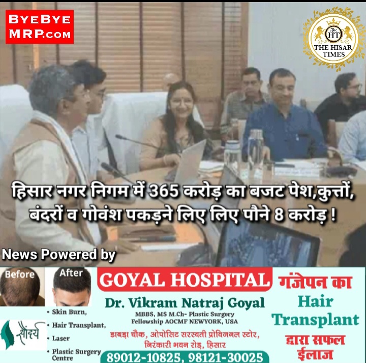 हिसार टाइम्स – हिसार में आज नगर निगम में 365 करोड़ रुपए का बजट पेश किया गया। जबकि नगर निगम को 2024 में 248 करोड़ की आमदनी हुई है। मगर बजट आमदनी से 100 करोड़ से ज्यादा है। इस बार बजट पिछली बार से 57 करोड़ ज्यादा है। इस बार बजट में कुत्तों, बंदरों व गोवंश के लिए अलग से बजट रखा है। तीनों पर नगर निगम करीब पौने 8 करोड़ की राशि खर्च करेगा। कुत्तों के वैक्सीनेशन पर 70 लाख, बंदर पकड़ने के लिए 2 करोड़ और गोवंश के लिए 5 करोड़ का बजट का प्रावधान रखा गया है।