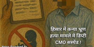Crime, Lifestyle, Politics, Top News हिसार में कन्या भ्रूण हत्या मामले मे डिप्टी CMO सस्पेंड ! April 10, 2025
