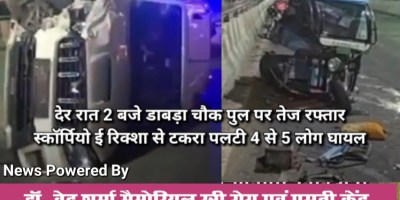 Crime, Lifestyle, Politics, Top News देर रात 2 बजे डाबड़ा चौक पुल पर तेज रफ्तार स्कॉर्पियो ई रिक्शा से टकरा पलटी 4 से 5 लोग घायल ! April 11, 2025