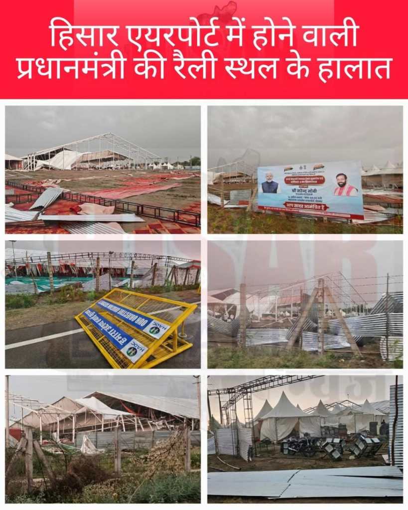 हिसार टाइम्स – हिसार मे पीएम नरेंद्र मोदी की रैली को लेकर नागरिक उड्डयन मंत्री विपुल गोयल शुक्रवार को हिसार पहुंचे। उन्हाेंने एयरपोर्ट परिसर में हवाई में अधिकारियों के साथ बैठक की। मंत्री ने कहा कि आंधी बारिश से हुई बाधा को 24 घंटे में दूर किया जाए। शनिवार शाम तक पूरा रैली स्थल तैयार कर लिया जाए। रविवार को सीएम भी रैली स्थल पर पहुंचेंगे। इससे पहले लोक निर्माण एवं जनस्वास्थ्य अभियांत्रिकी मंत्री रणबीर सिंह गंगवा ने शुक्रवार को हिसार एयरपोर्ट पर प्रधानमंत्री की 14 अप्रैल को प्रस्तावित कार्यक्रम की तैयारियों को लेकर जायजा लिया।
