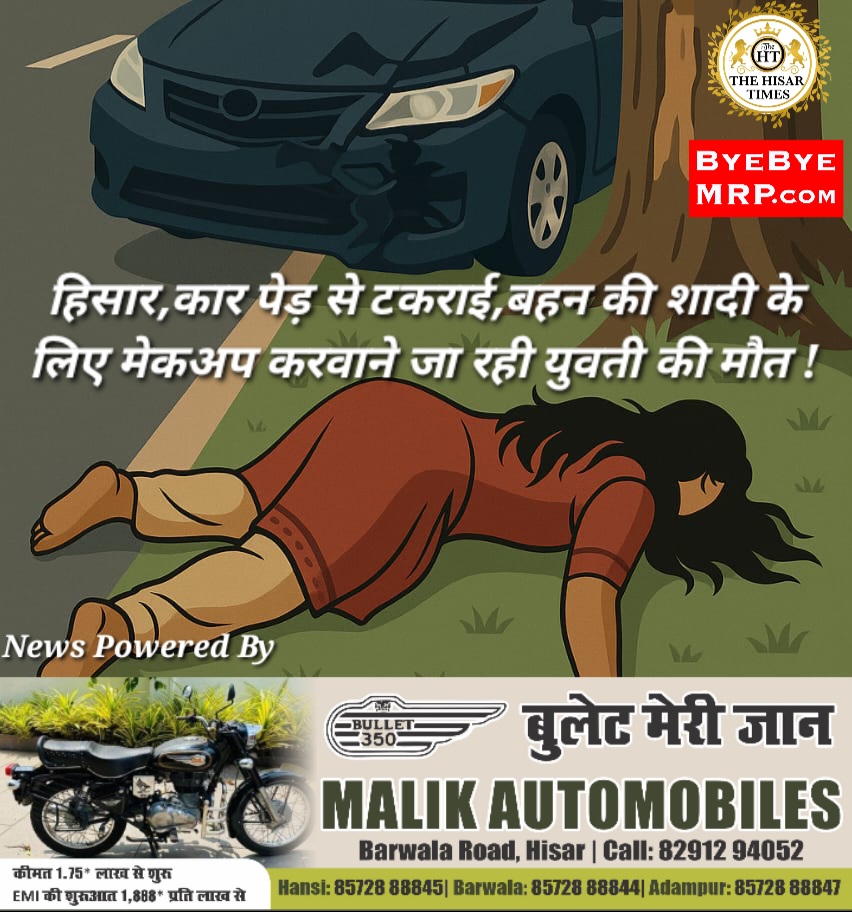 हिसार,कार पेड़ से टकराई,बहन की शादी के लिए मेकअप करवाने जा रही युवती की मौत !