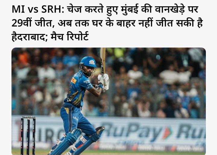 ▪️MI vs SRH : मुंबई इंडियंस वानखेड़े में 4 विकेट से जीती, हैदराबाद की सीजन में 5वीं हार