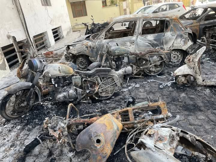 अर्बन स्टेट ( DC Colony )सिल्वर अपार्टमेंट के बाहर खड़ी गाड़ियों में लगी आग,तीन गाड़ियां व 10 से ज्यादा दुपहिया वाहन जलकर राख !