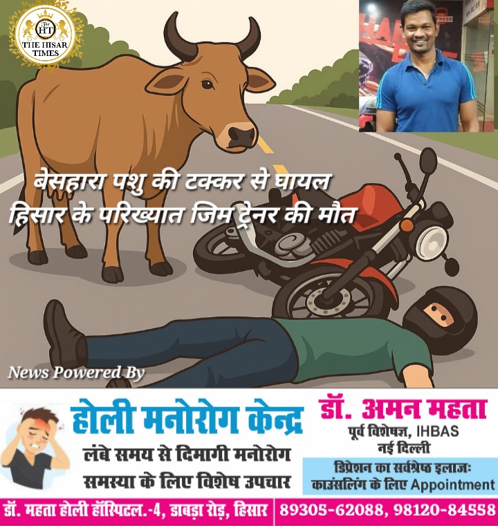 बेसहारा पशु की टक्कर से घायल हिसार के परिख्यात जिम ट्रेनर की मौत !